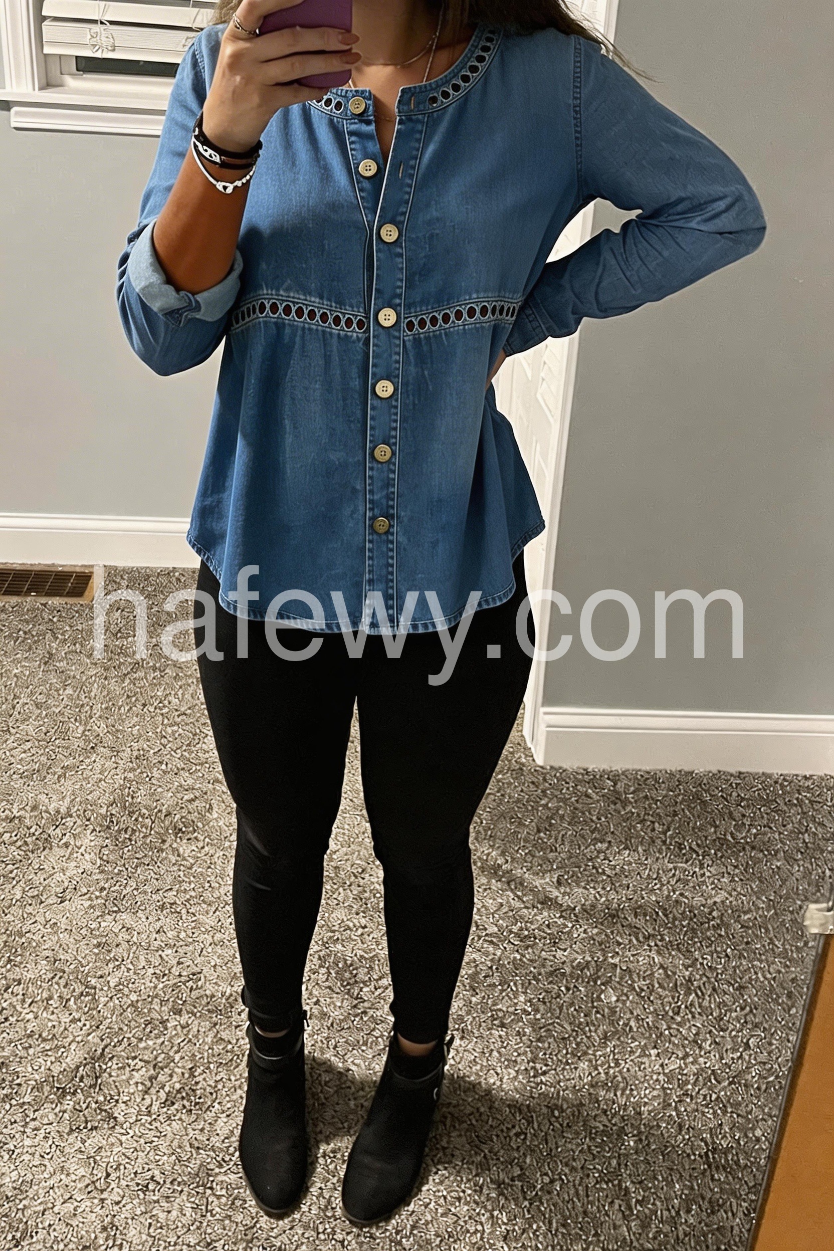 Blue Denim Button Down Top