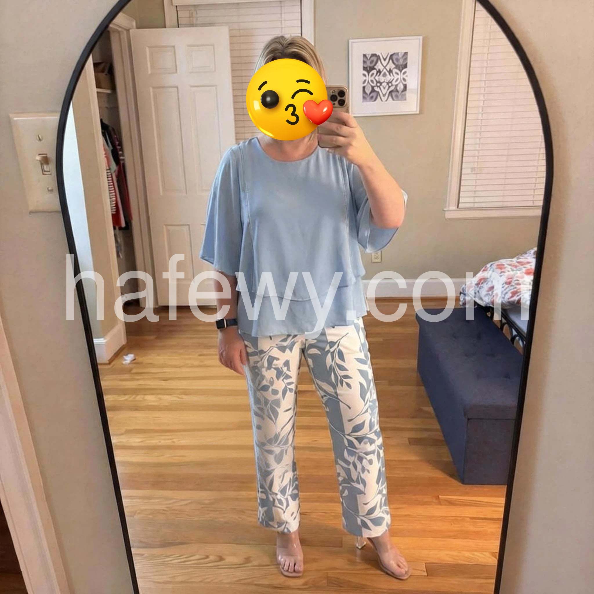 Blue 3/4 Sleeve Two Piece Set