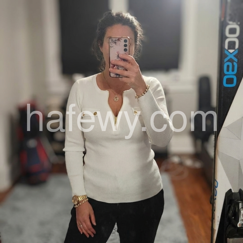 Elevate your wardrobe with our Chic Zip V-Neck White Plain Knit Top. The stylish v-neck neckline and subtle zip feature add a touch of sophistication to any outfit. Made from high-quality, soft knit material, this top is both comfortable and versatile. Perfect for any occasion, elevate your style with this must-have piece.