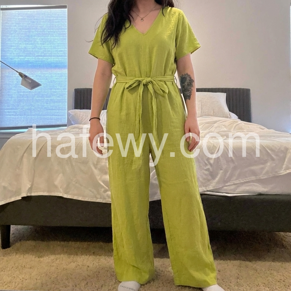 This versatile Green Plain Short Sleeve Jumpsuit is a must-have for any wardrobe. Made with high-quality, breathable fabric, it offers both comfort and style. The short sleeves provide a touch of elegance, making it perfect for any occasion. Elevate your fashion game with this chic jumpsuit.