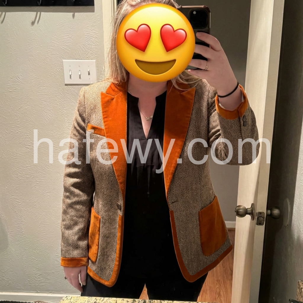 Elevate your wardrobe with this sophisticated brown herringbone velvet blazer, a timeless piece that seamlessly bridges vintage charm and contemporary style. The luxurious velvet fabric showcases a classic herringbone weave, delivering both visual depth and tactile elegance. Featuring a refined single-button closure, this blazer offers a streamlined silhouette that flatters various body types while maintaining impeccable structure. The rich brown tone pairs effortlessly with neutrals or bold accents, making it an indispensable layering piece for professional settings, evening occasions, or elevated casual wear. Perfect for those who appreciate quality craftsmanship and enduring design.