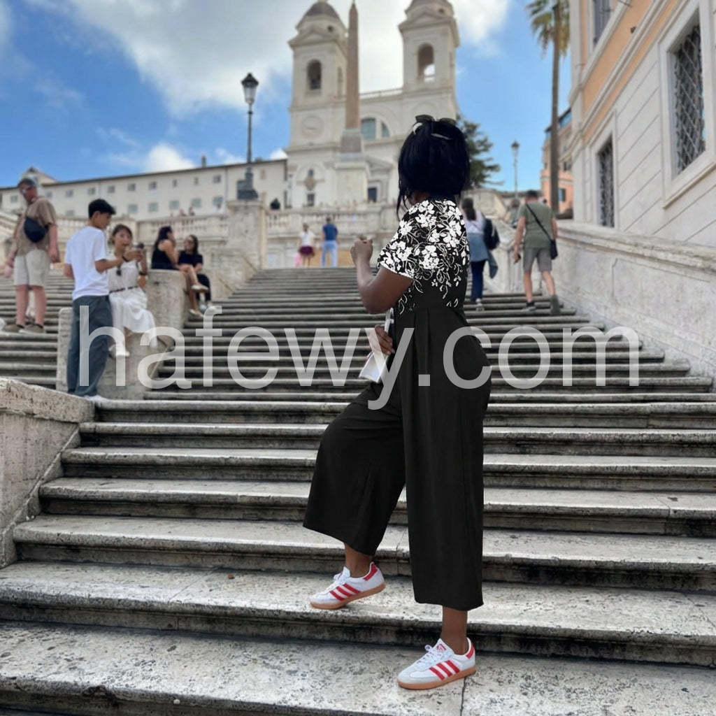 Expertly designed with a trendy black floral print, this jumpsuit is sure to elevate your style. Featuring half sleeves and a comfortable fit, it's perfect for any occasion. Made with high-quality materials, this jumpsuit is a must-have for any fashion-forward individual.