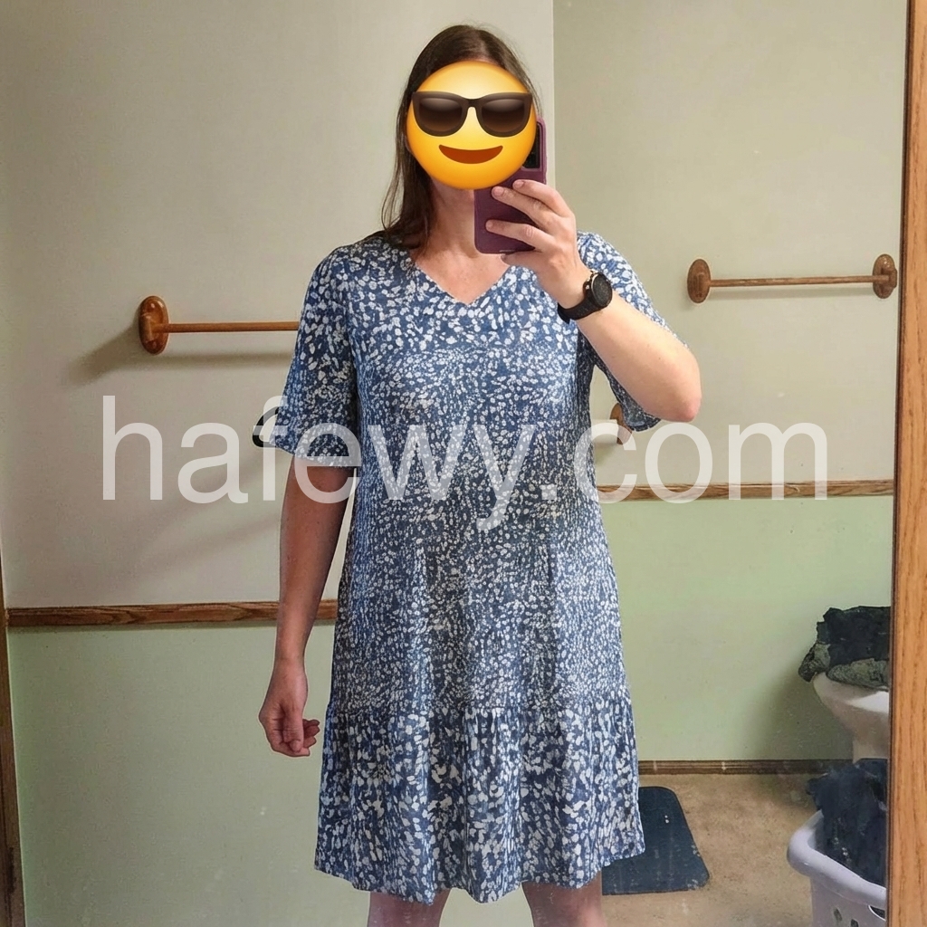 Blue White Floral V-Neck Tiered Shift Dress – Casual Ruffle Sleeve Summer Dress